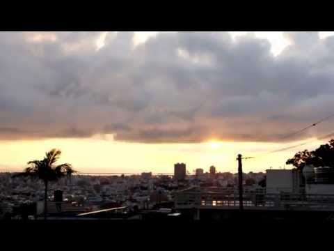 DMC-GH3 で夕陽をタイムラプス撮影してみました。 あいにくの空模様で雲が多いです。